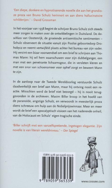 Maxim Biller heeft deze brief herschreven op 'wereldniveau', zo schreef de Duitse pers. Wereldniveau, omdat Biller in meesterlijk proza Schulz' voorgevoel van de Holocaust en van zijn eigen tragisch einde verwoordt. Schulz is een bange man. Gedreven door angsten, fantasieën en obsessies, verzint hij een bizar voorwendsel om zijn brief te schrijven.