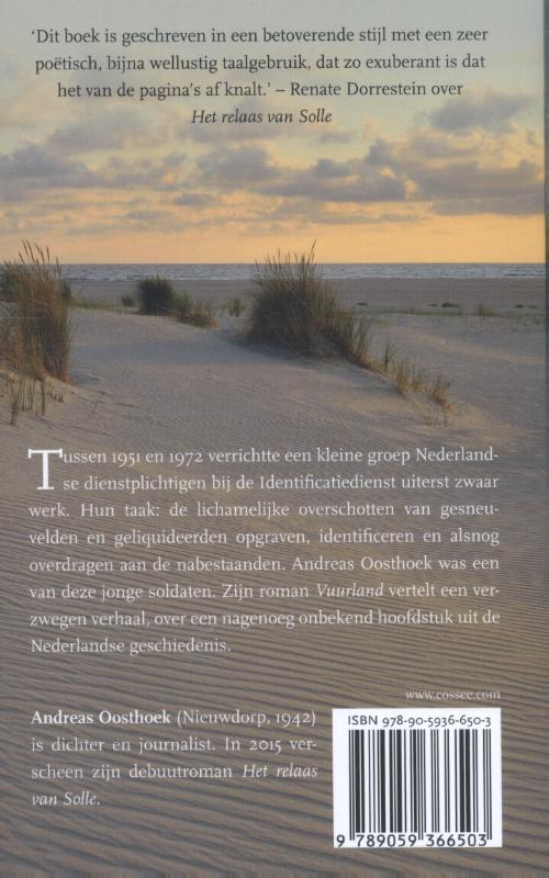 In zijn deels autobiografische roman Vuurland vertelt Andreas Oosthoek over zijn tijd als dienstplichtig militair bij het omstreden detachement Dienst Identificatie, een 'samenraapsel van dromers en denkers, gestrande studenten en rotjongens'. Ze zijn overgeleverd aan de naweeën van de oo... Meer